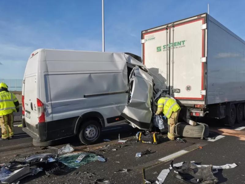 Video Şofer român aruncat prin parbriz, după ce s-a înfipt cu duba într-un TIR, pe o autostradă din Belgia