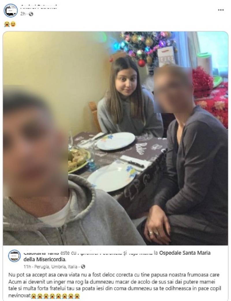 Trei prieteni au murit pe loc, în urma unui accident de groază petrecut la primele ore ale zilei de duminică. Ana, fiica de doar 15 ani a unor români din Italia, se numără printre victime, în timp ce fratele ei, în vârstă de 20 de ani, este singurul supraviețuitor al tragediei și luptă pentru viața lui în spitalul Santa Maria della Misericordia din Perugia.