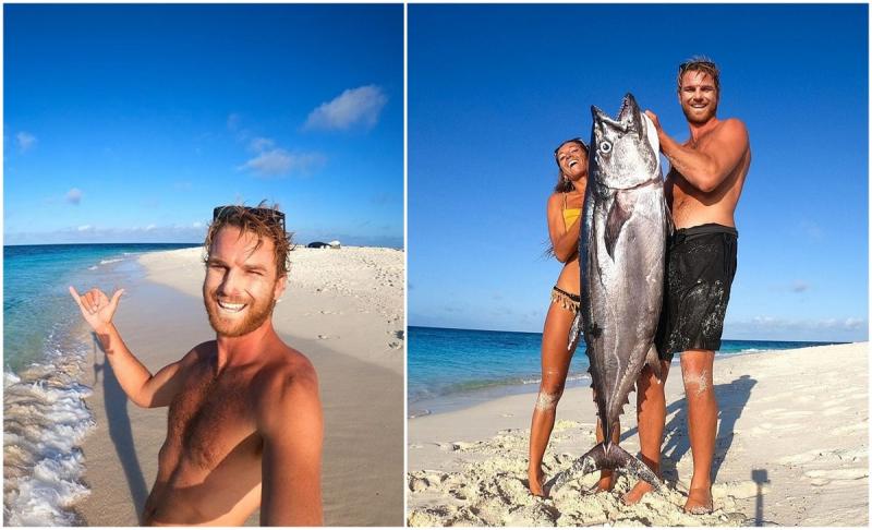 Tânărul a postat videoclipul comic pe Instagram săptămâna trecută cu titlul: „Tilly câinele de pază, ținând rechinii departe de insula Haggerstone”.