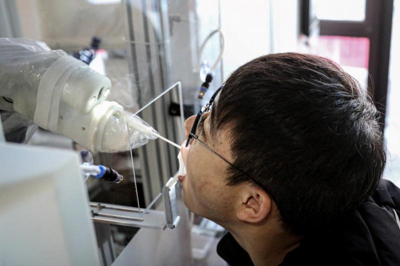 Instalat într-o grădiniţă, la Shenyang, capitala provinciei Liaoning, în nord-estul Chinei, acest braţ articulat, controlat de la distanţă de către un operator, sondează delicat gâtul pacienţilor cu un tampon. Numeroşi locuitori din Shenyang au stat la coadă, în centrul de testare.