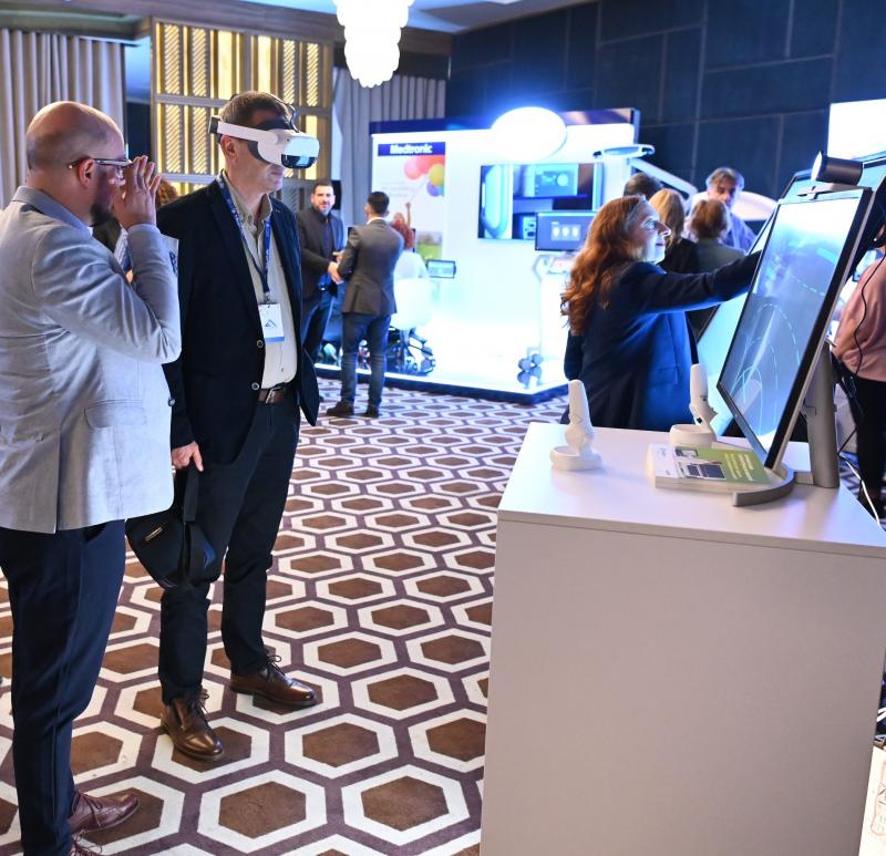 Doi roboți chirurgicali au fost vedetele expoziției. Cel dintâi este unul pe care specialiștii din România în acest segment îl văd prima dată: sistemul de chirurgie asistată robotic HUGO RAS, printre ale cărui beneficii se numără vizualizarea 3D de înaltă definiție și gama de instrumente necesare chirurgiei minim invazive. Pentru pacient, utilizarea acestei tehnologii înseamnă reducerea riscurilor de complicații postoperatorii, scăderea duratei spitalizării și diminuarea pierderii de sânge. Cele trei componente majore ale sistemului sunt turnul sistemului, consola chirurgului și cele patru module cu brațe, fiecare din acestea fiind o componentă independentă, mobilă, care se conectează la un instrument chirurgical. Comparativ cu laparoscopia convențională, acest sistem permite o vizualizare îmbunătățită, utilizarea instrumentelor cu grade suplimentare de libertate, ergonomie îmbunătățită pentru chirurg și precizie în câmpul chirurgical.