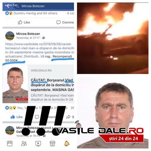 50.000 de euro recompensă pentru găsirea unui bărbat din Borşa, dispărut de 9 zile. Maşina lui a fost găsită incendiată