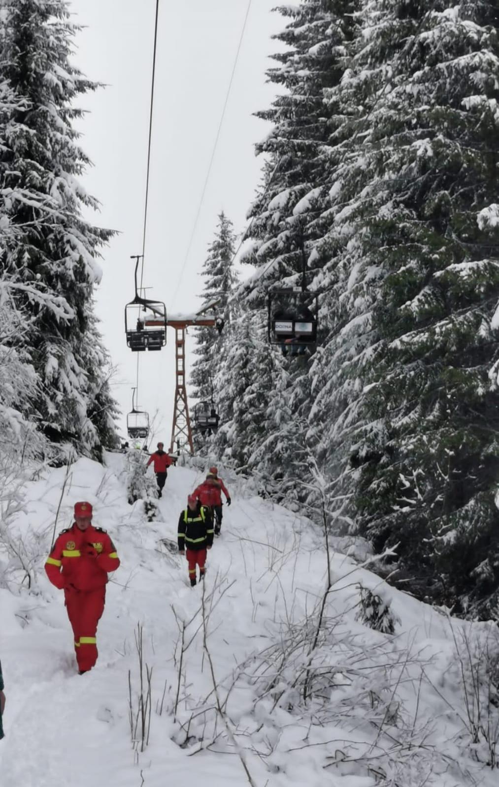 9 turiști, printre care și un copil, au rămas blocați în telescaun la Vatra Dornei | Sursa foto: Salvamont Vatra Dornei