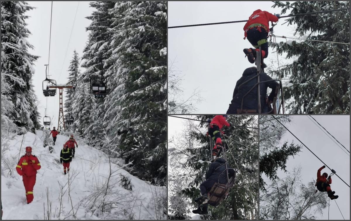9 turiști, printre care și un copil, au rămas blocați în telescaun la Vatra Dornei