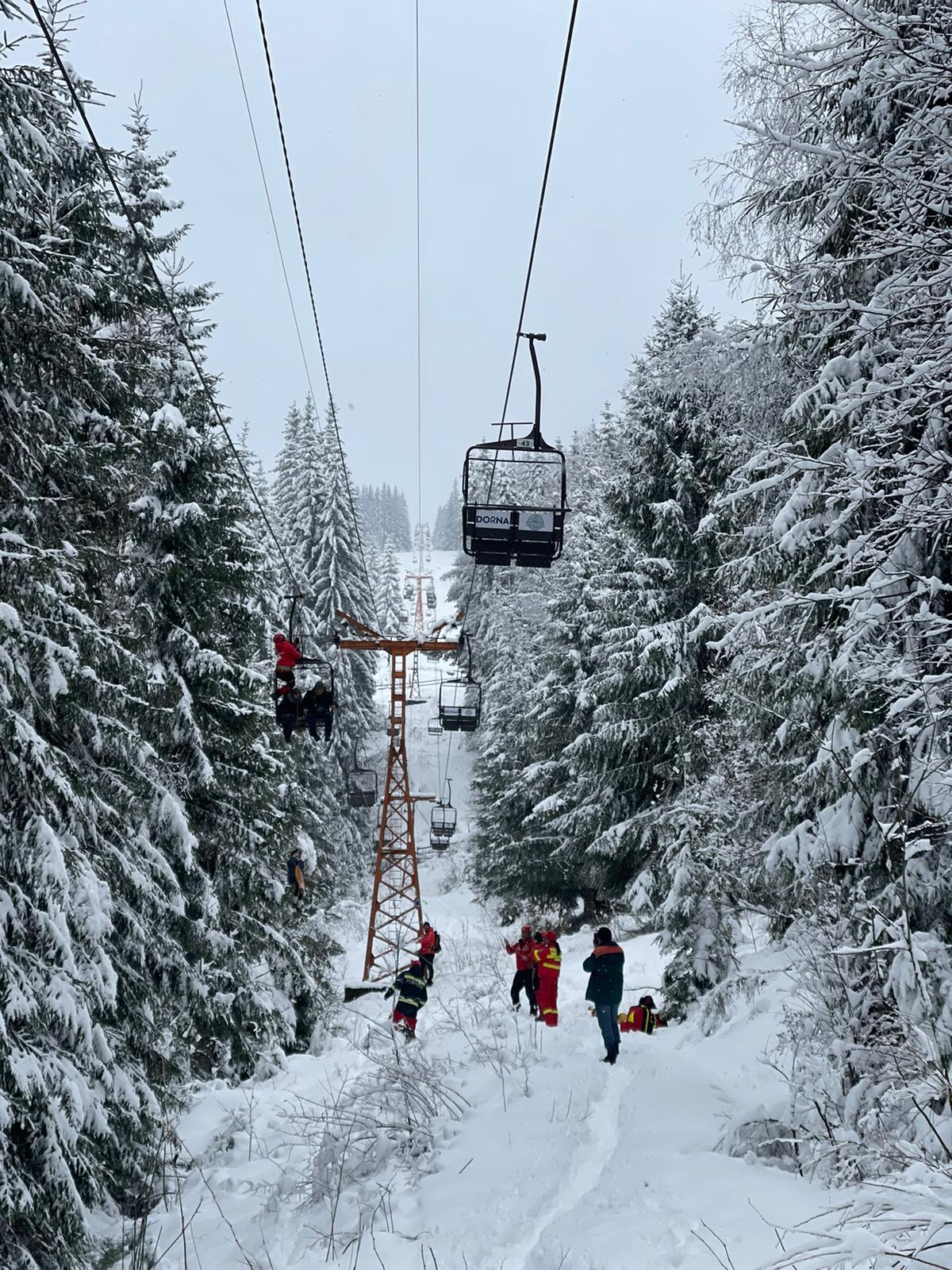 9 turiști, printre care și un copil, au rămas blocați în telescaun la Vatra Dornei