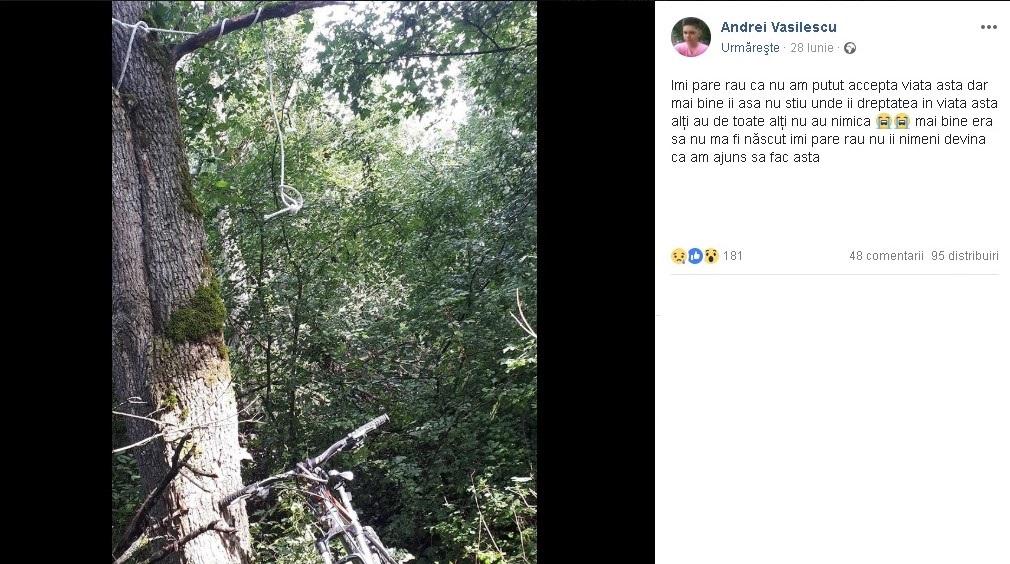 Andrei, băiatul dispărut de 4 luni, găsit mort, spânzurat în pădure. El anunțase pe Facebook ce urma să facă