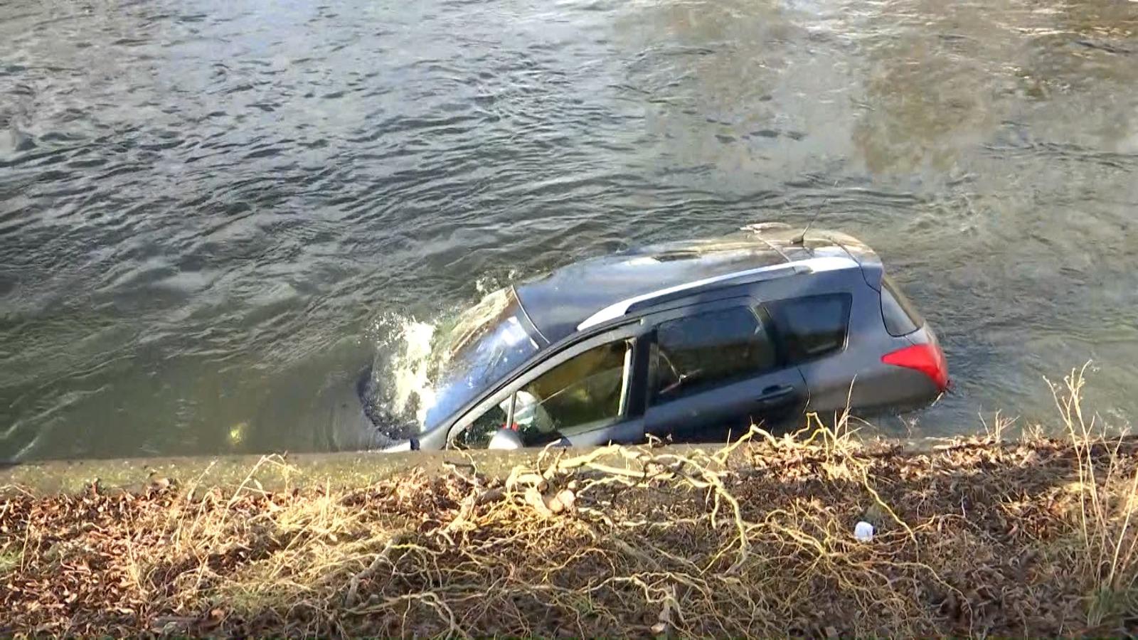 "A alunecat... 40 am avut, n-am avut mai mult". Sătul să stea în coloană, un şofer clujean a depăşit pe şinele ude de tramvai şi a plonjat cu maşina în Someş
