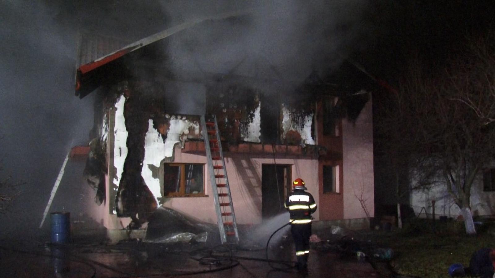 A ars de vie, după ce casa în care se afla a fost cuprinsă de flăcări. Femeia din Argeş aprinsese nişte candele în memoria soţului
