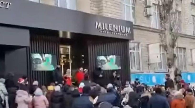 A plouat cu bijuterii în faţa unui magazin din Chişinău. Zeci de oameni s-au „bătut” ca să prindă ceva | Sursa foto: captura video