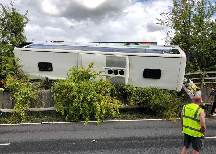 Accident cu 41 de răniţi în Anglia. Un copil s-a născut chiar pe autostradă, imediat după ce un autocar s-a răsturnat