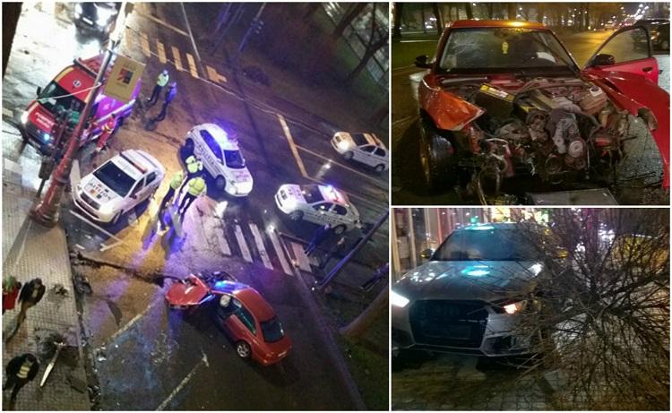 Impact devastator în centrul Aradului! Doi bolizi de lux s-au făcut praf, unul a smuls din rădăcini un copac | Sursa foto: newsar.ro / specialarad.ro