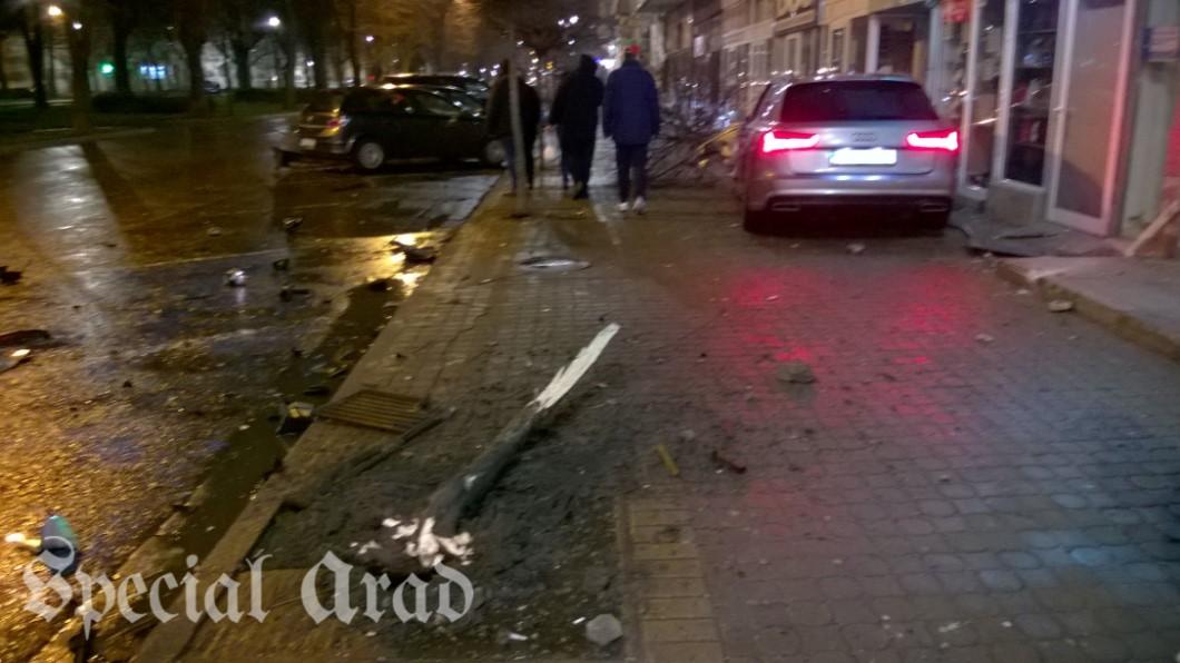 Impact devastator în centrul Aradului! Doi bolizi de lux s-au făcut praf, unul a smuls din rădăcini un copac (Imagini dramatice) | Imaginea 3 din 4 | Galerie Foto