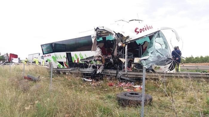 Peste 20 de victime, într-un accident teribil în Spania. Un autocar cu 46 de pasageri s-a ciocnit cu un TIR (video)