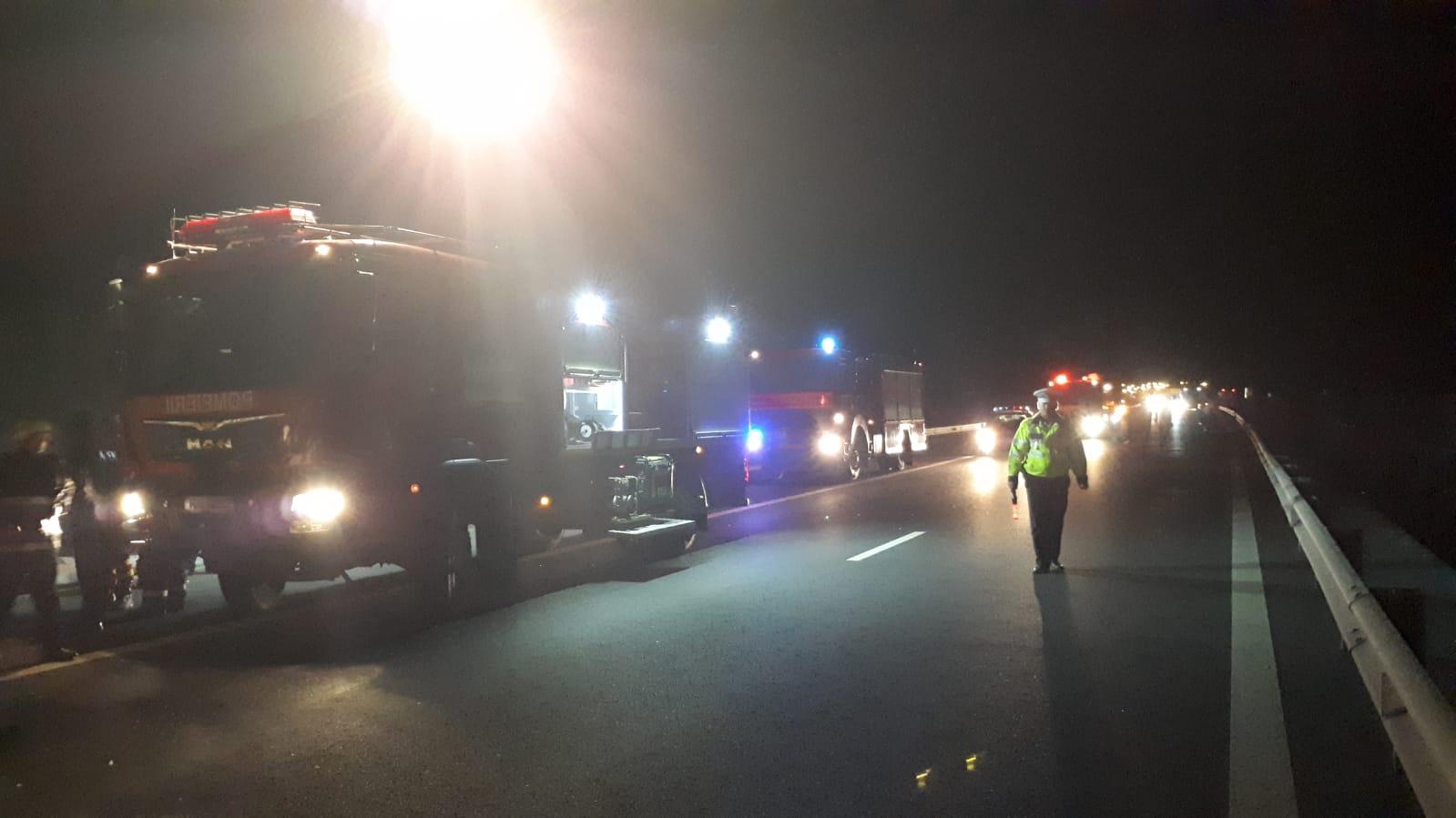 Accident grav pe autostrada A1. Microbuz cu persoane răsturnat, intervin SMURD şi ISU Sibiu