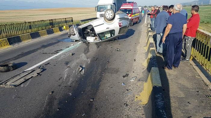Accident teribil pe DN1, în apropiere de Beclean. Un mort şi un rănit grav, după ce două maşini s-au lovit frontal