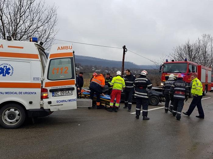 Accident la Bibireşti, în Bacău. Un şofer începător, de 19 ani, a depăşit în curbă şi a intrat direct într-o maşină care venea din sens opus