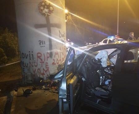 Impact înfiorător la Bistriţa, şofer mort, strivit de stâlpul pasarelei, în acelaşi loc în care a murit Andrei Pintican (Video)