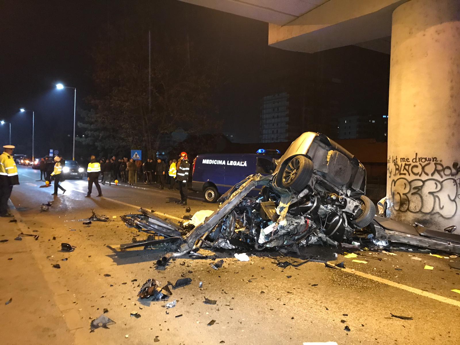 Un tânăr a murit pe loc la Bistrița, după ce mașina sa a lovit cu viteză maximă stâlpul unei pasarele