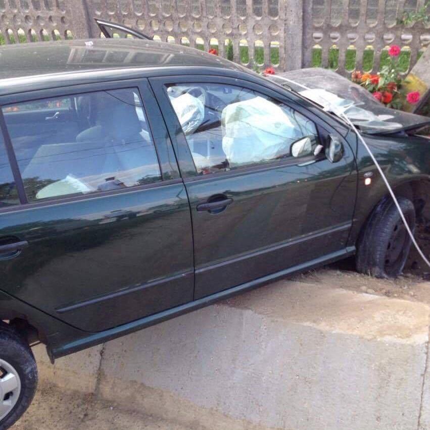 Accident BIZAR la Cluj. O şoferiţă a zburat cu maşina peste un canal, înfigându-se într-un stâlp electric. Nimeni nu ştie ce a vrut să facă (GALERIE FOTO)