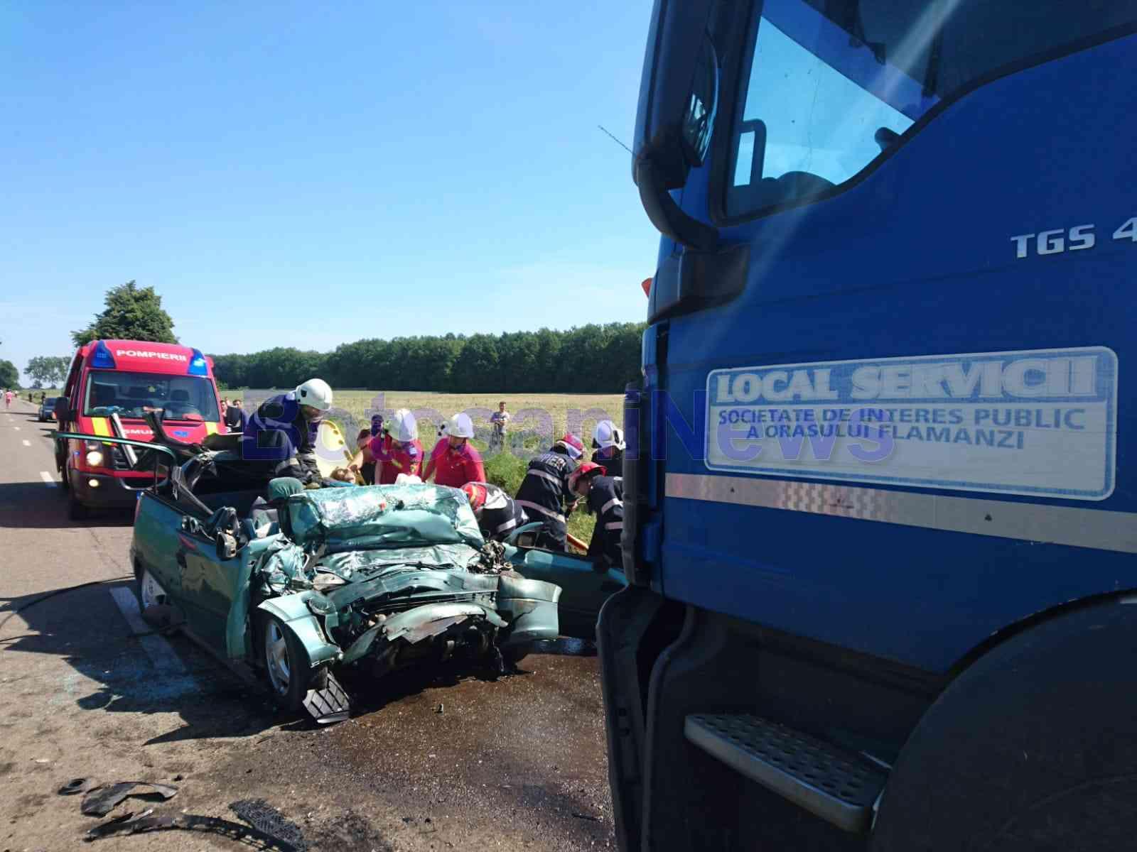Accident cumplit la Botoşani. Opel spulberat de un camion, şoferul a murit pe loc