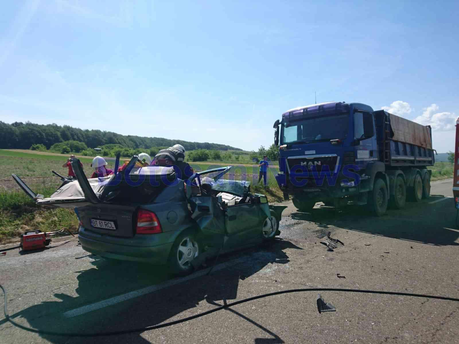 Accident cumplit la Botoşani. Opel spulberat de un camion, şoferul a murit pe loc