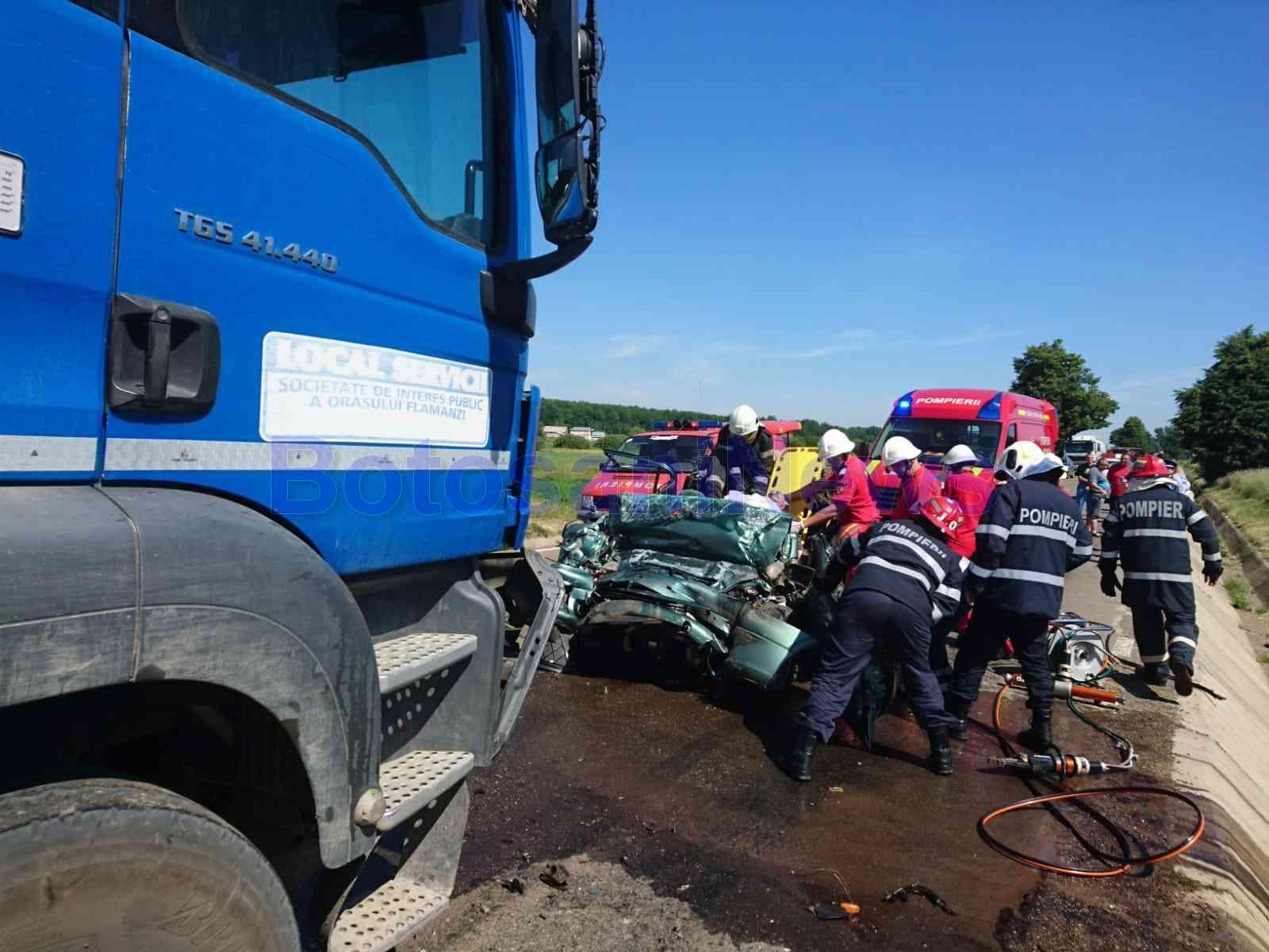 Accident cumplit la Botoşani. Opel spulberat de un camion, şoferul a murit pe loc