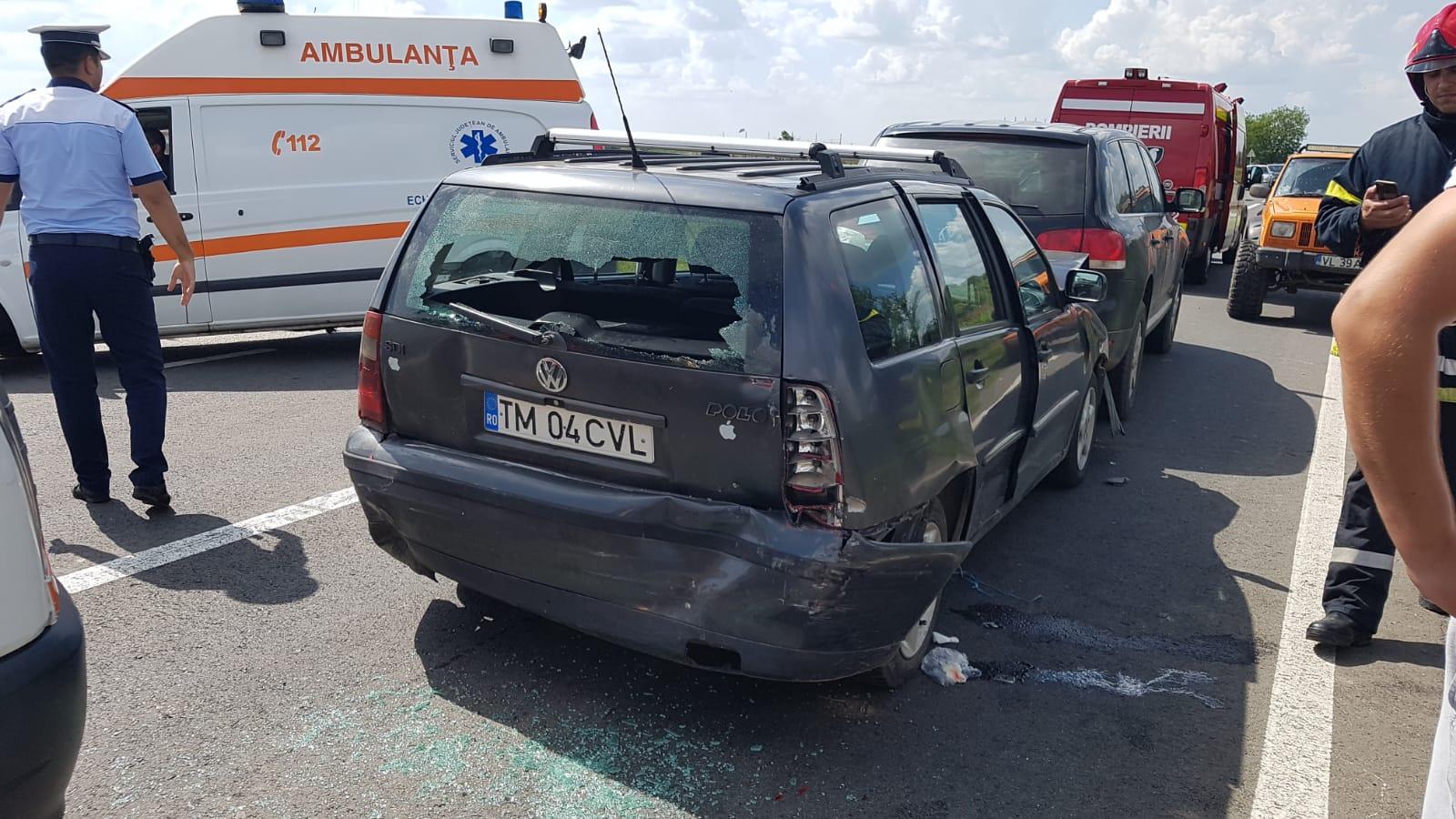 Accident în lanț în Timiș! Patru mașini și un microbuz s-au ciocnit la ieșirea din Becicherecu Mic (Foto)