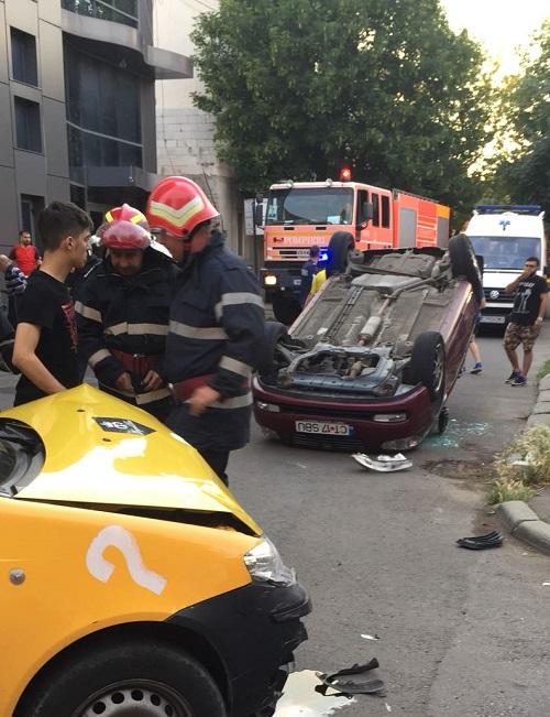 Impact violent la Constanța! O mașină s-a răsturnat pe carosabil, o victimă rămânând încarcerată (Foto)