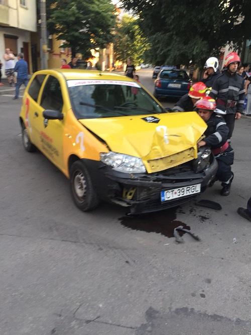 Impact violent la Constanța! O mașină s-a răsturnat pe carosabil, o victimă rămânând încarcerată (Foto)
