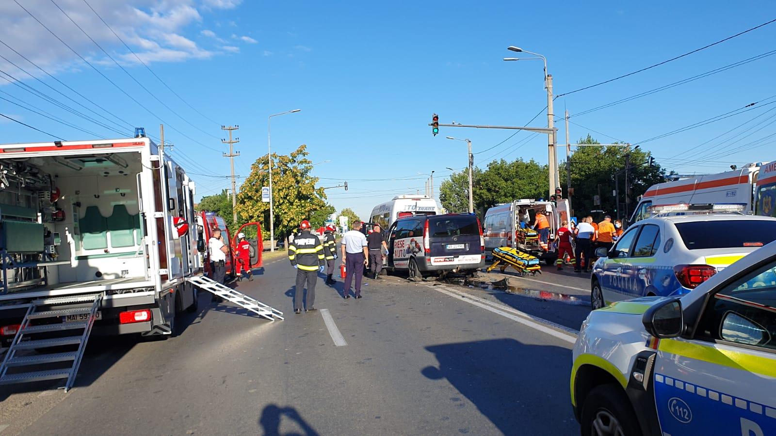 Accident cu 12 răniţi, la ieşirea din Arad. Două microbuze şi o maşină s-au izbit pe sensul de mers spre Nădlac