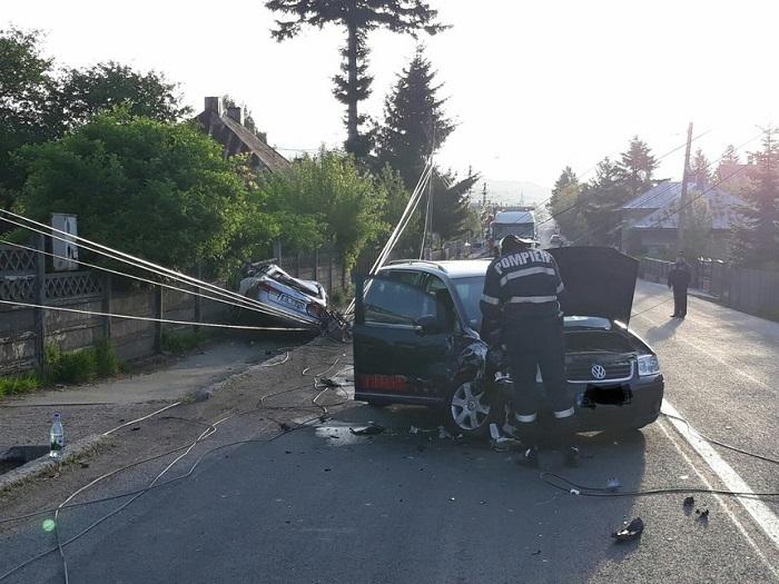 Accident cu 7 victime în Bistriţa-Năsăud. Un stâlp de electricitate a făcut praf una dintre maşini