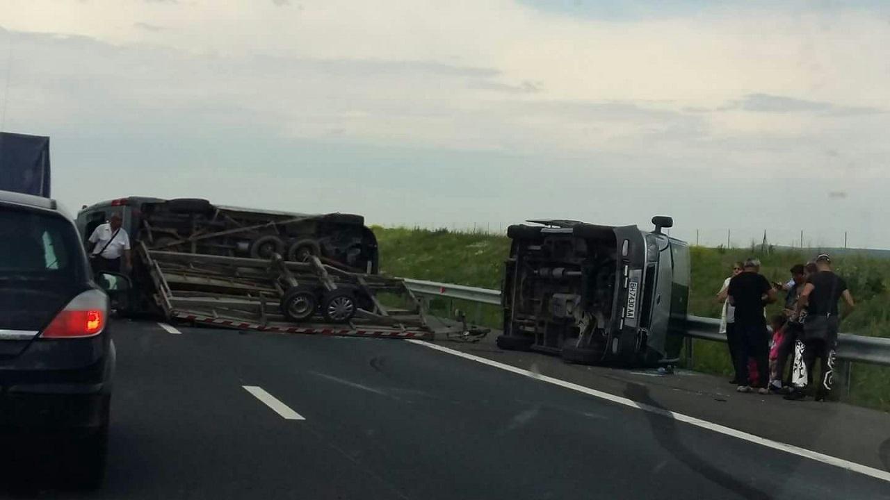 ACCIDENT cu două microbuze pe autostrada A1: Într-unul din microbuze se aflau şapte persoane (FOTO)