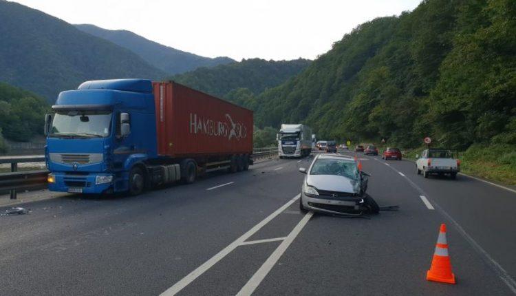 Accident cu patru autovehicule pe Valea Oltului. Un microbuz a intrat pe contrasens și a proiectat o mașină în două TIR-uri (Video)