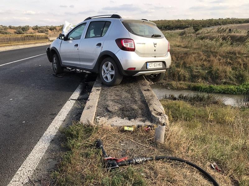 A văzut MOARTEA cu ochii! Un șofer a pierdut controlul volanului și s-a înfipt în PARAPETUL podului de la Medgidia. IMAGINI DRAMATICE