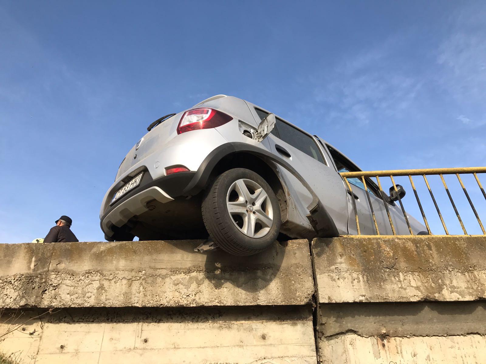 A văzut MOARTEA cu ochii! Un șofer a pierdut controlul volanului și s-a înfipt în PARAPETUL podului de la Medgidia. IMAGINI DRAMATICE