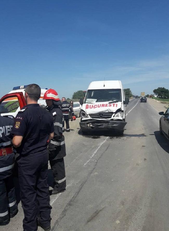 Accident violent în Dâmboviţa. Microbuz cu pasageri, izbit de un tractor condus de o femeie