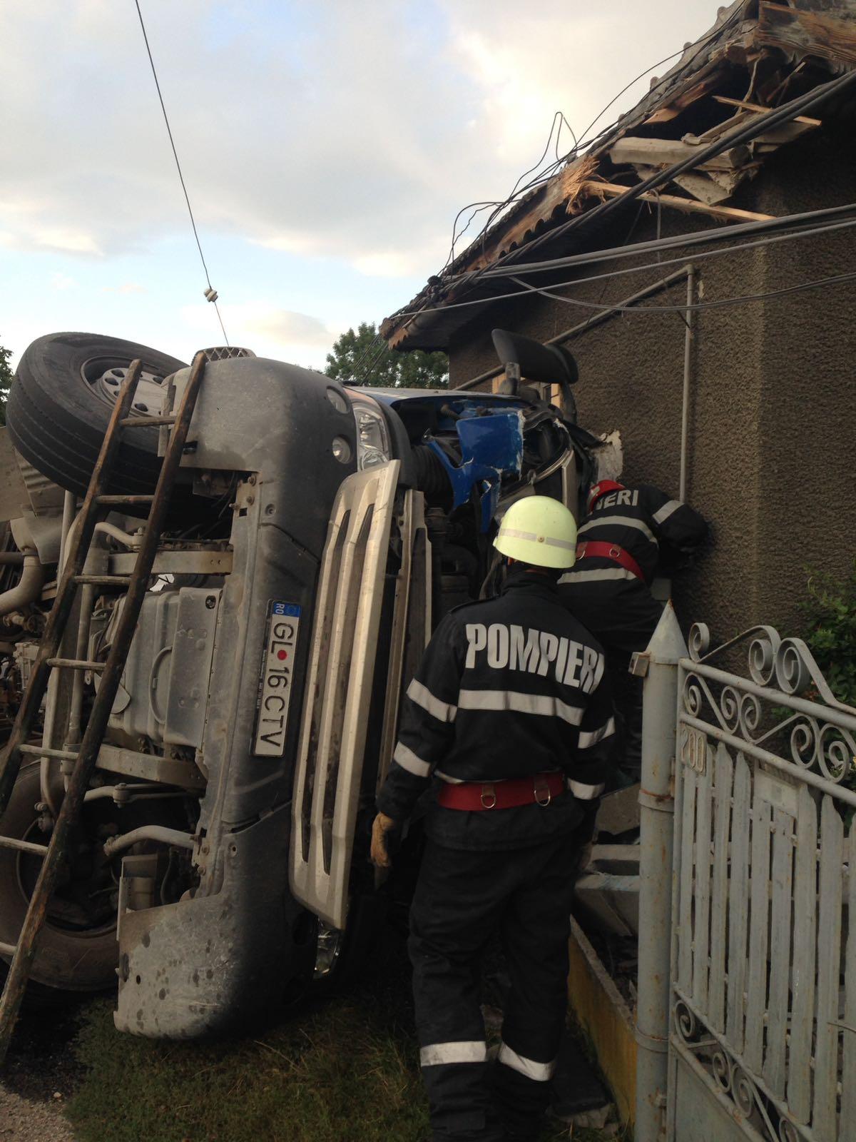 Accident teribil în Dâmboviţa, la Moţăieni. Un TIR scăpat de sub control a rupt tot în cale şi s-a înfipt într-o casă (Video)