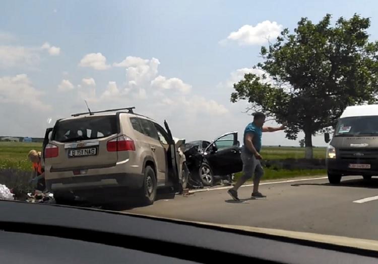 Accident groaznic în Dâmboviţa. Un mort şi patru răniţi după ce două maşini s-au ciocnit la Ilfoveni. Victimele au rămas prinse între fiare (Video)