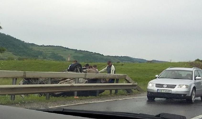 Accident DEVASTATOR la Sibiu. Copil în stare gravă, după ce un autoturism a SPULBERAT, pe CONTRASENS, DOUĂ MAȘINI care circulau regulamentar. Cinci victime, două încarcerate