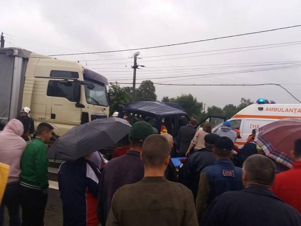 Accident devastator la Milişăuţi, 1 mort şi 3 răniţi în stare critică. Pe o ploaie torenţială, un TIR a spulberat o camionetă