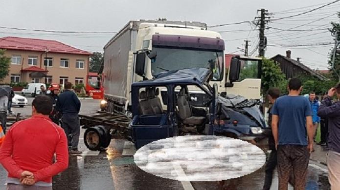 Accident devastator la Milişăuţi, 1 mort şi 3 răniţi în stare critică. Pe o ploaie torenţială, un TIR a spulberat o camionetă