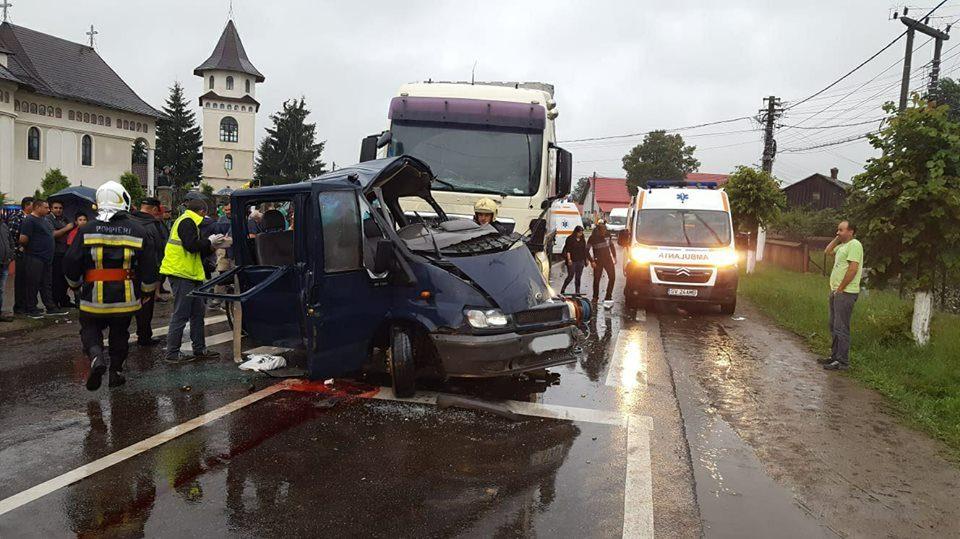 Accident devastator la Milişăuţi, 1 mort şi 3 răniţi în stare critică. Pe o ploaie torenţială, un TIR a spulberat o camionetă
