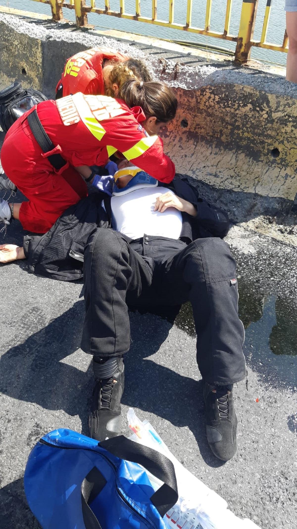 Accident teribil pe DN1, între Avrig şi Bradu. Doi motociclişti s-au ciocnit cu un microbuz de marfă, traficul este blocat