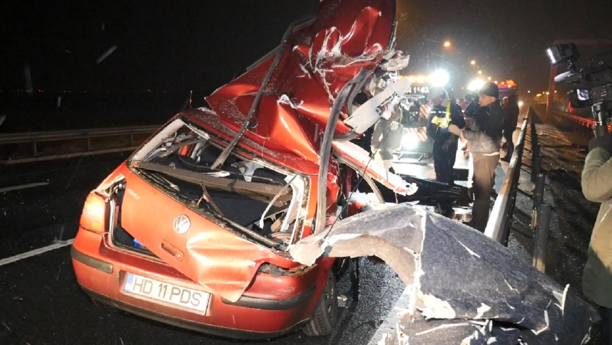 Imagini îngrozitoare pe autostradă, lângă Sebeş. Doi morţi, unul dintre ei a zburat pe geam din maşină