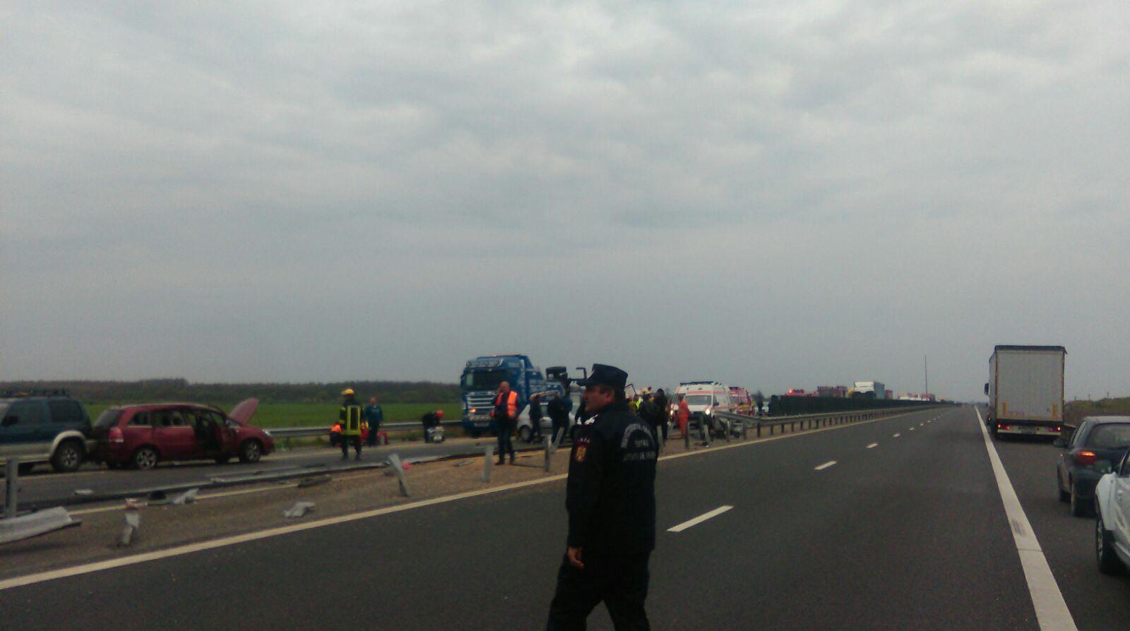 Accident EXTREM DE GRAV, pe A1, la KM 551. Un TIR şi trei maşini implicate, s-a intervenit cu descarcerare, mai multe ambulanţe şi elicopter SMURD (VIDEO)