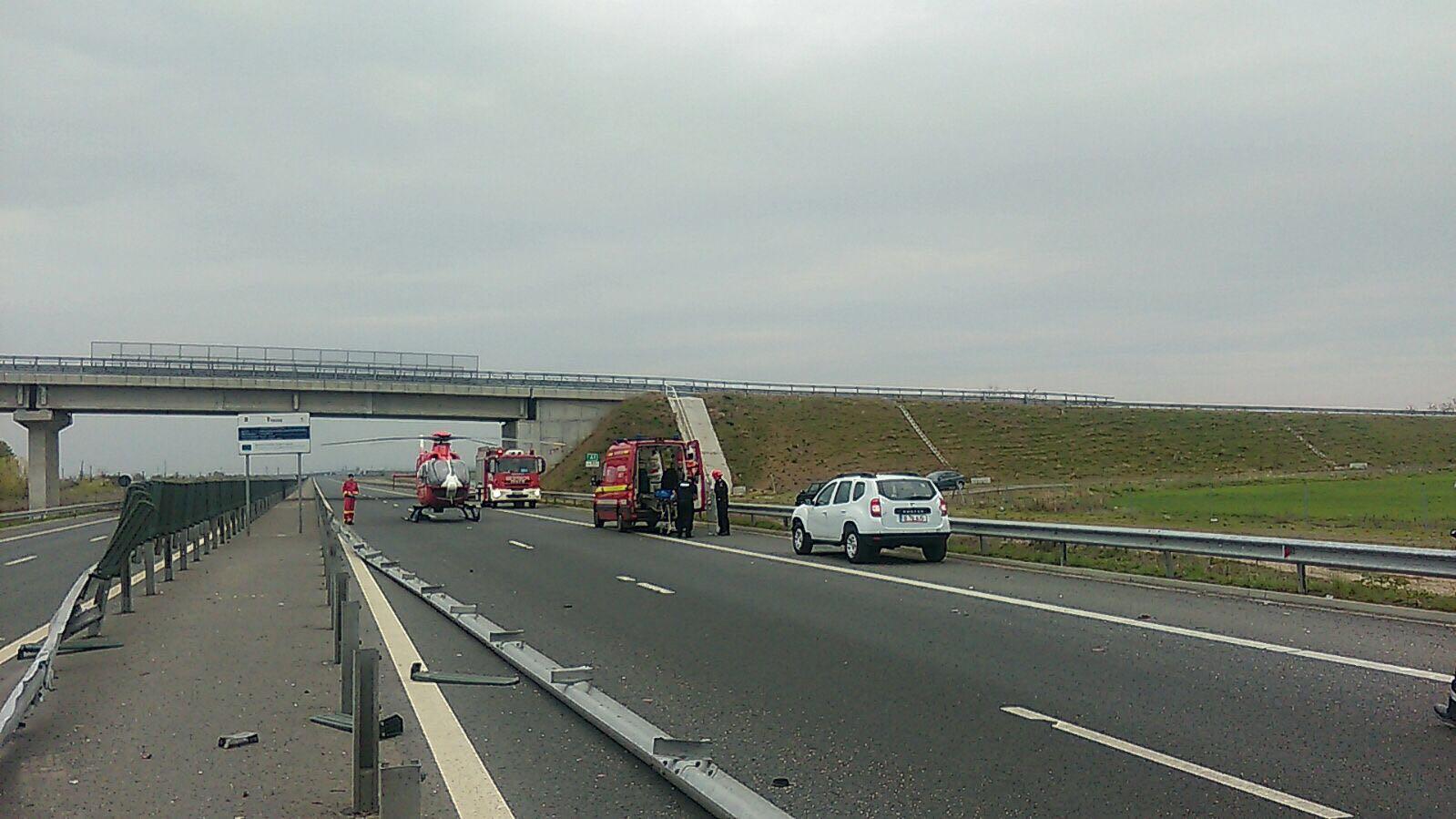 Accident EXTREM DE GRAV, pe A1, la KM 551. Un TIR şi trei maşini implicate, s-a intervenit cu descarcerare, mai multe ambulanţe şi elicopter SMURD (VIDEO)