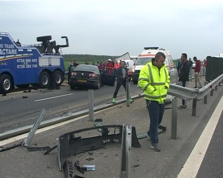 Accident EXTREM DE GRAV, pe A1, la KM 551. Un TIR şi trei maşini implicate, s-a intervenit cu descarcerare, mai multe ambulanţe şi elicopter SMURD (VIDEO)