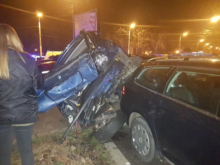 Accident fără precedent în Constanţa! Şoferiţa unui Audi a distrus într-o clipă zece maşini şi a pus la pământ un stâlp de electricitate