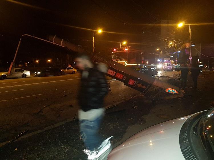 Accident fără precedent în Constanţa! Şoferiţa unui Audi a distrus într-o clipă zece maşini şi a pus la pământ un stâlp de electricitate