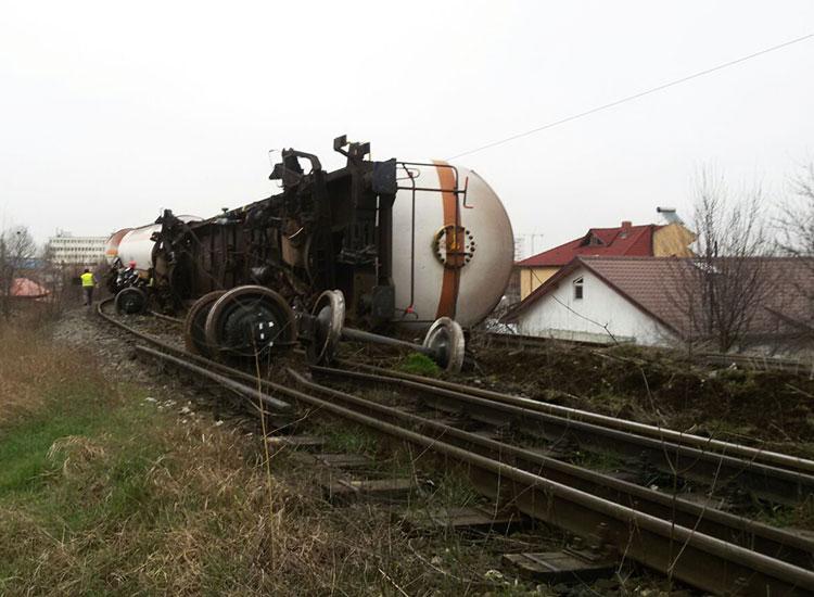 Accident feroviar în Constanța! Un tren cu vagoane-cisternă s-a răsturnat pe un pod (Foto)